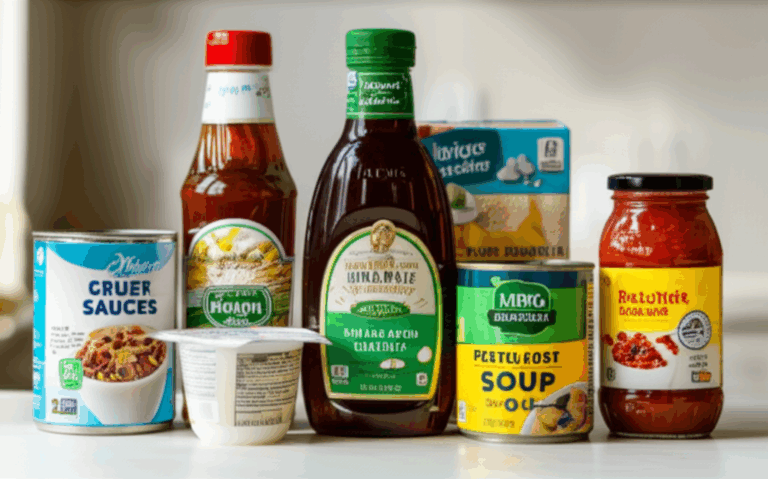 - Condiments and sauces: Ketchup, barbecue sauce, salad dressings, and pasta sauces.