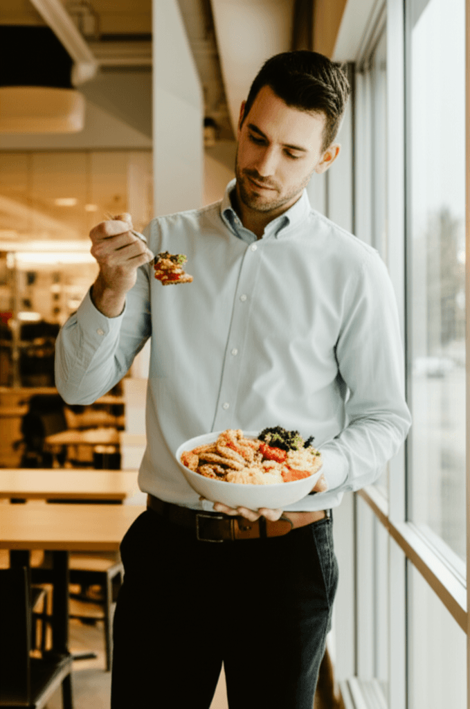 Pay attention to what goes into your meal. Avoid dishes with cream-based sauces, excessive cheese, or high-calorie toppings. While “salad” sounds healthy, heavy dressings and fried toppings can quickly turn it into a high-calorie meal. Choose brown rice or quinoa over white rice when available for more fiber.